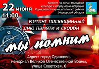 22 июня в Одинцово состоится митинг «Мы помним»