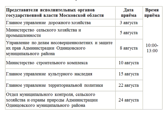 График приема граждан в Правительстве Московской области