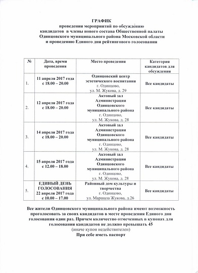График мероприятий по обсуждению кандидатов в Общественную палату третьего созыва